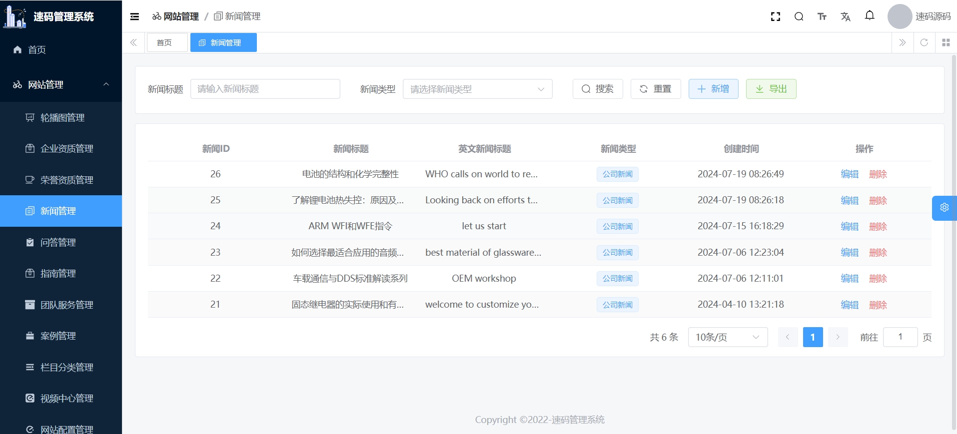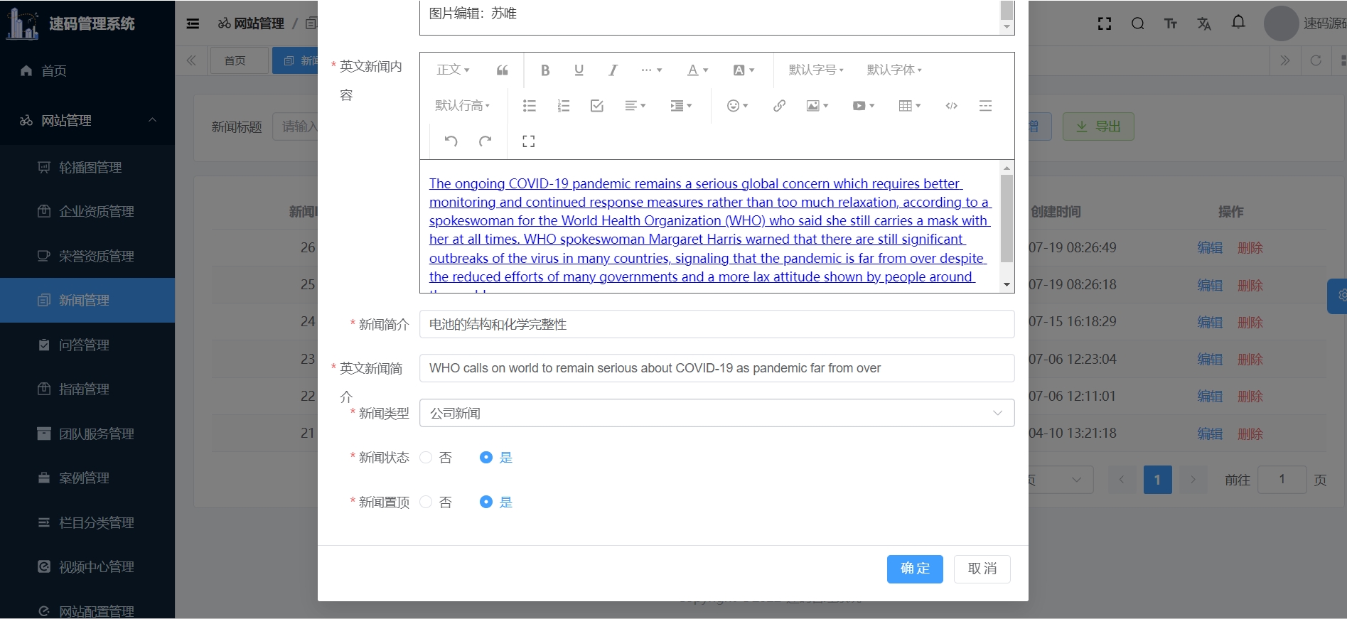 新增新闻双语界面